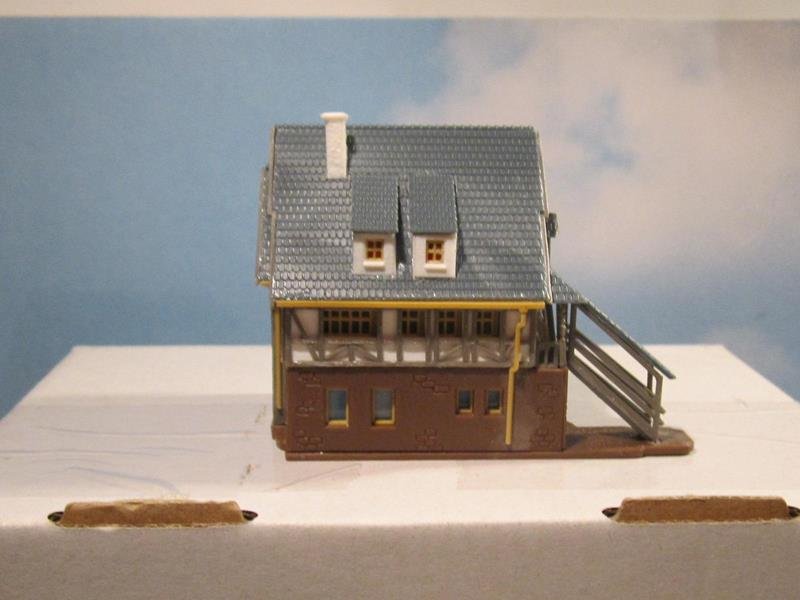 La scelta del fabbricato è ricaduto sul kit Vollmer n° 9547 , una riproduzione di Weinhandlung ( enoteca/fiaschetteria ) che ben si sposa con i moduli vigna, la qualità estetica dei prodotti Vollmer è alta compensando le fatiche di assemblaggio causate sia dal tipo di stampo/plastiche un po datate oltre a una complessità dei sub assemblaggi . Questo kit fa parte di una serie di fabbricati che partono da una base comune per poi diversificarsi grazie ai vari particolari aggiunti, il che comporta un continuo consultare le istruzioni per assemblare i pezzi.