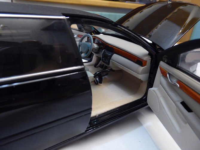 lunga ben 47 cm, con un peso che credo sia quasi di 2 Kg ! Generalmente i modelli " Die Cast " presentano alcuni comuni difetti che esteticamente ne compromettono la riuscita del modello , nello specifico, risultano evidenti le fessure nelle parti apribili, cofani e portiere, e temevo molto questa cosa, fortunatamente no , perfetta e corretta ; solo se spendiamo parecchi soldini su marchi come Norev, Minichamps, Kyosho, modelli costosi, avremo la probabilità maggiore di esenza di difetti ; questo modello presenta innanzitutto sul cofano motore , uno stupendo e corretto simbolo Cadillac in metallo, di eccellente fattura, estremamente piccolo ; belllissima la riproduzione del motore, mentre il vano bagagli è foderato in simil tessuto vellutato ; tutti gli interni, meravigliosi, ma poco visibili esternamente, sono stati riprodotti, se non erro può ospitare 10 persone comodamente, troviamo anche i servizi di bicchieri con tanto di marchio per quelli da birra, inoltre vi è riprodotto lato autista ,anche un tablet per il controllo del veicolo ; ruote naturalmente in gomma e sterzanti, complementari con il volante . Complessivamente il modello, restituisce un'ottima sensazione di realismo, merito anche di un'ottima e fine verniciatura a specchio . Uno solo il problema, ma ne ero consapevole..dove la metto ? Lo spazio in casa è terminato...vedremo, la vedo dura !! :roll: [99] [99]