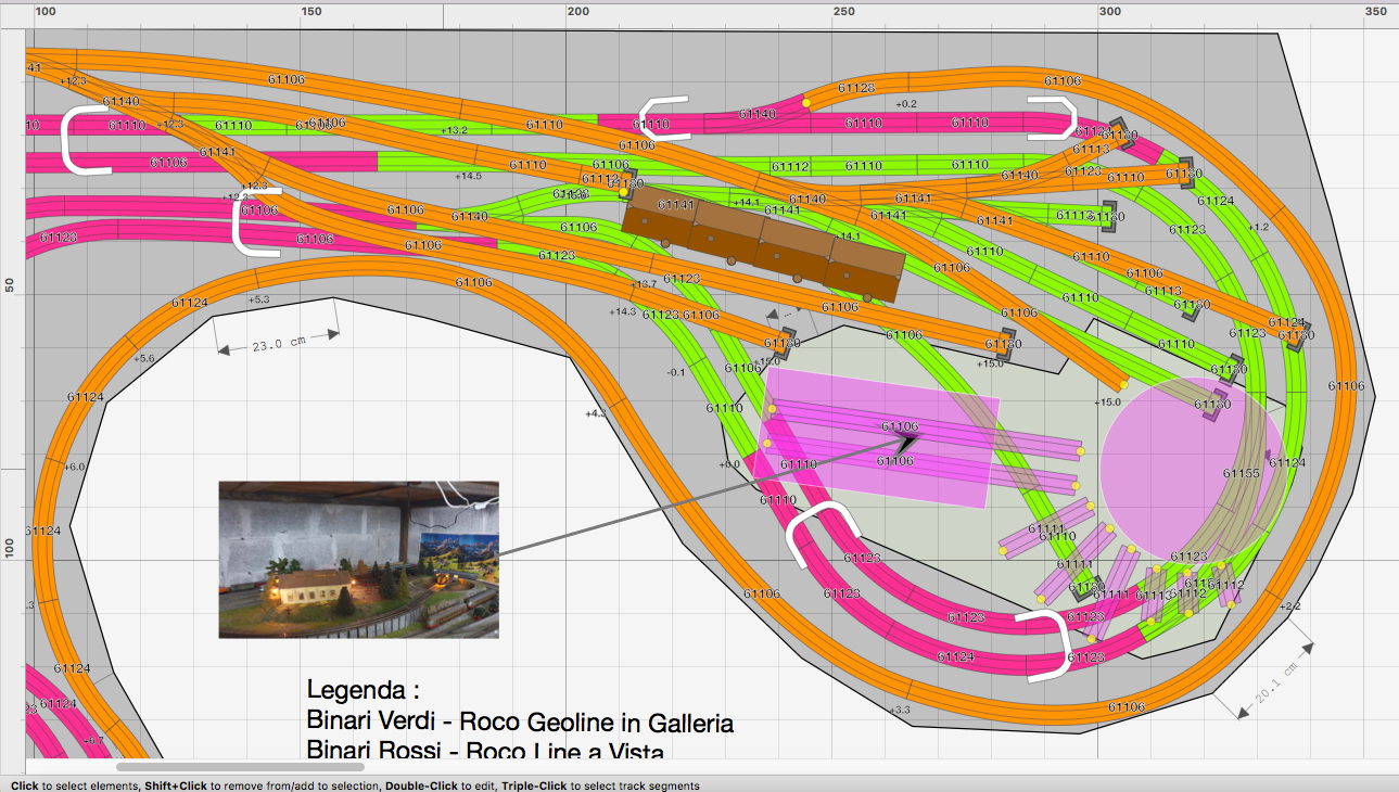 Un suggerimento che vorrei darti è quello di aumentare i raggi di curvatura dei binari rosa nell'angolo del layout e ridurre, se possibile, quella doppia ansa visto che sono a vista.