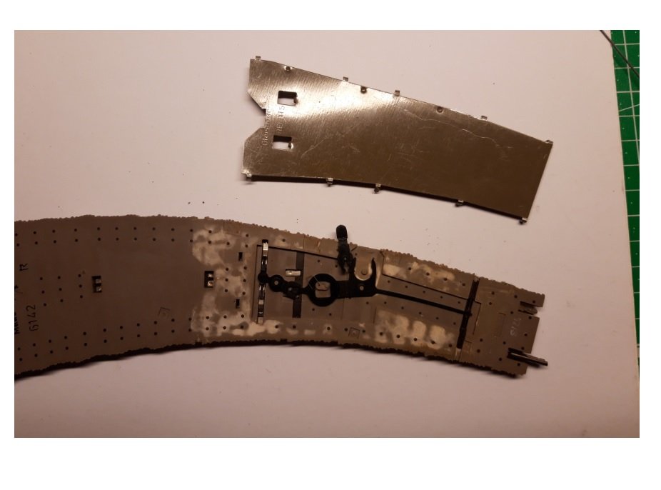 Iniziamo con il vedere il sotto del deviatoio che presenta una placca metallica