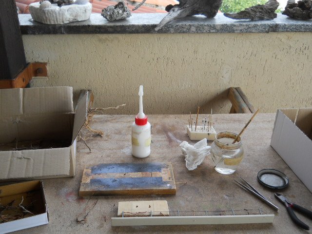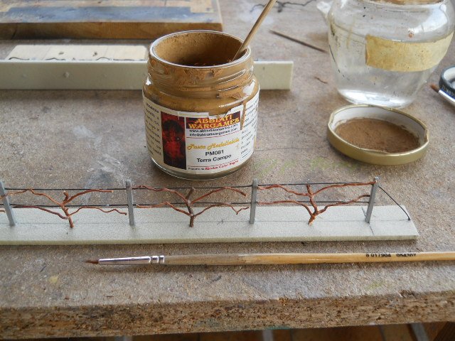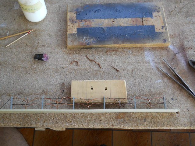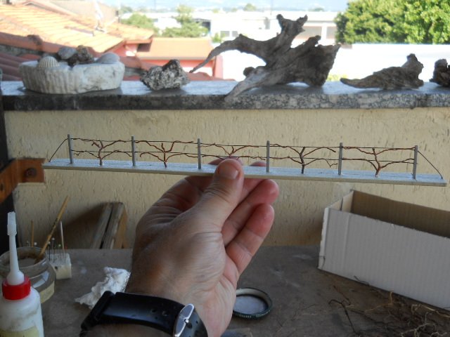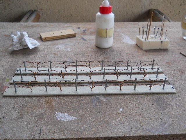 ciao ragazzi, posto questo mio ultimo lavoro in work in progress è un vigneto H0 in piano per un ragazzo di Torino per il suo diorama, basi in Eulithe trattate con acqua e vinavil, pali in noce sagomati in alto levigati forati , pitturati e incollati alle basi ciao per i prossimi passi...