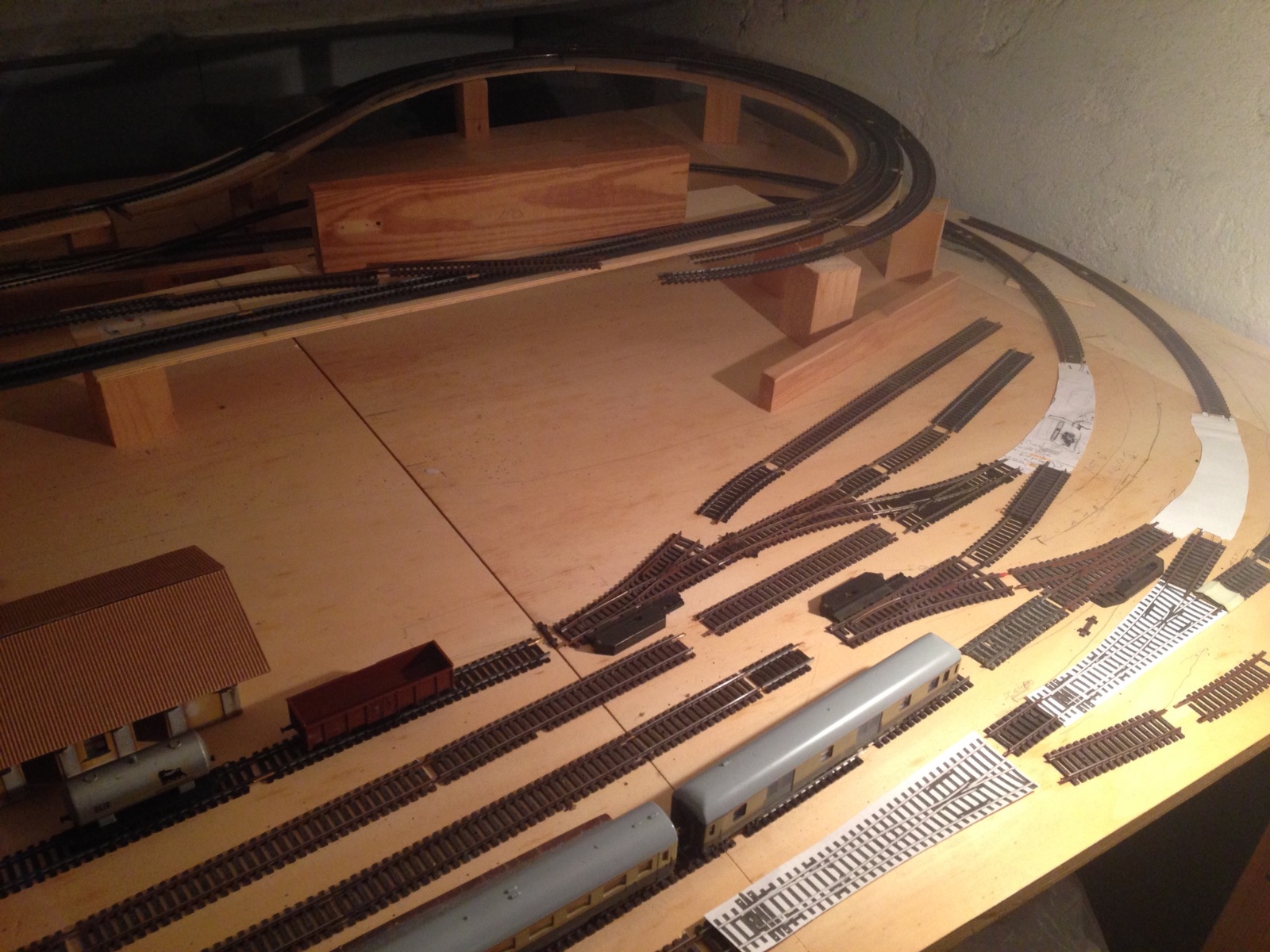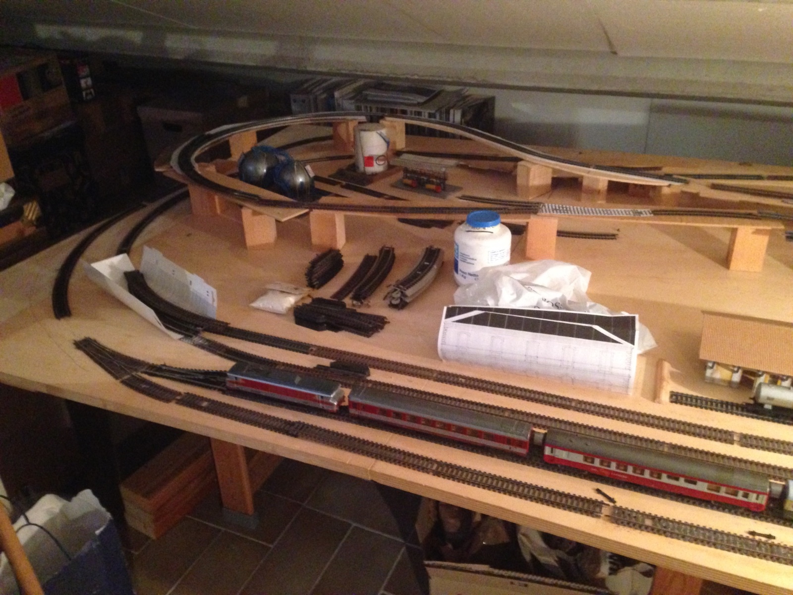 E' ancora tutto da sistemare dopo le ristrutturazioni di casa. Tenete presente che è tutto materiale di recupero budget zero (dovendo passare al digitale giustamente i vecchi Lima anch'essi recuperati qua e la andranno sostituiti). Fino a qualche giorno fa i binari erano tutti agganciati, ho fatto anche delle prove di trazione. La pendenza supera il 3% lo so, ma non di molto. Magari nei prossimi giorni faccio uno schema che illustra ORDINATAMENTE il progetto.