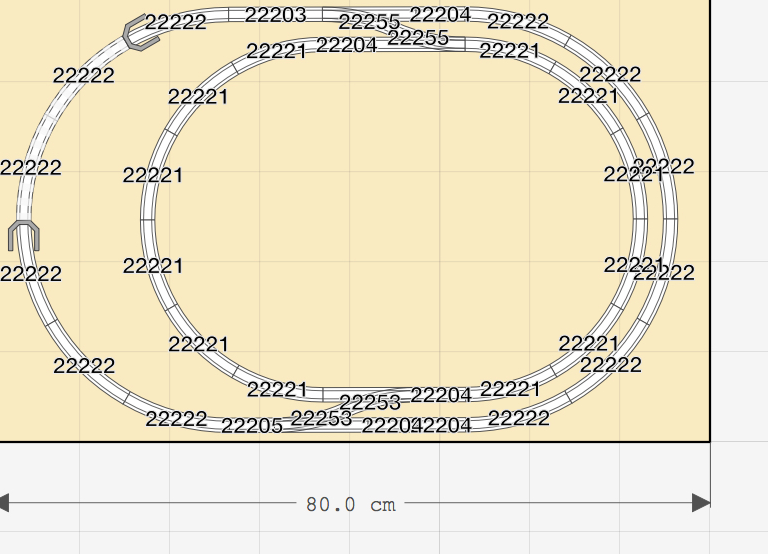 E' una soluzione intelligente! Grazie. In questo modo, solo spostando i deviatoi (22255 e 22253), posso ridurre alla metà la lunghezza. Mi resta però difficile il concetto di "stazione nascosta" [105]