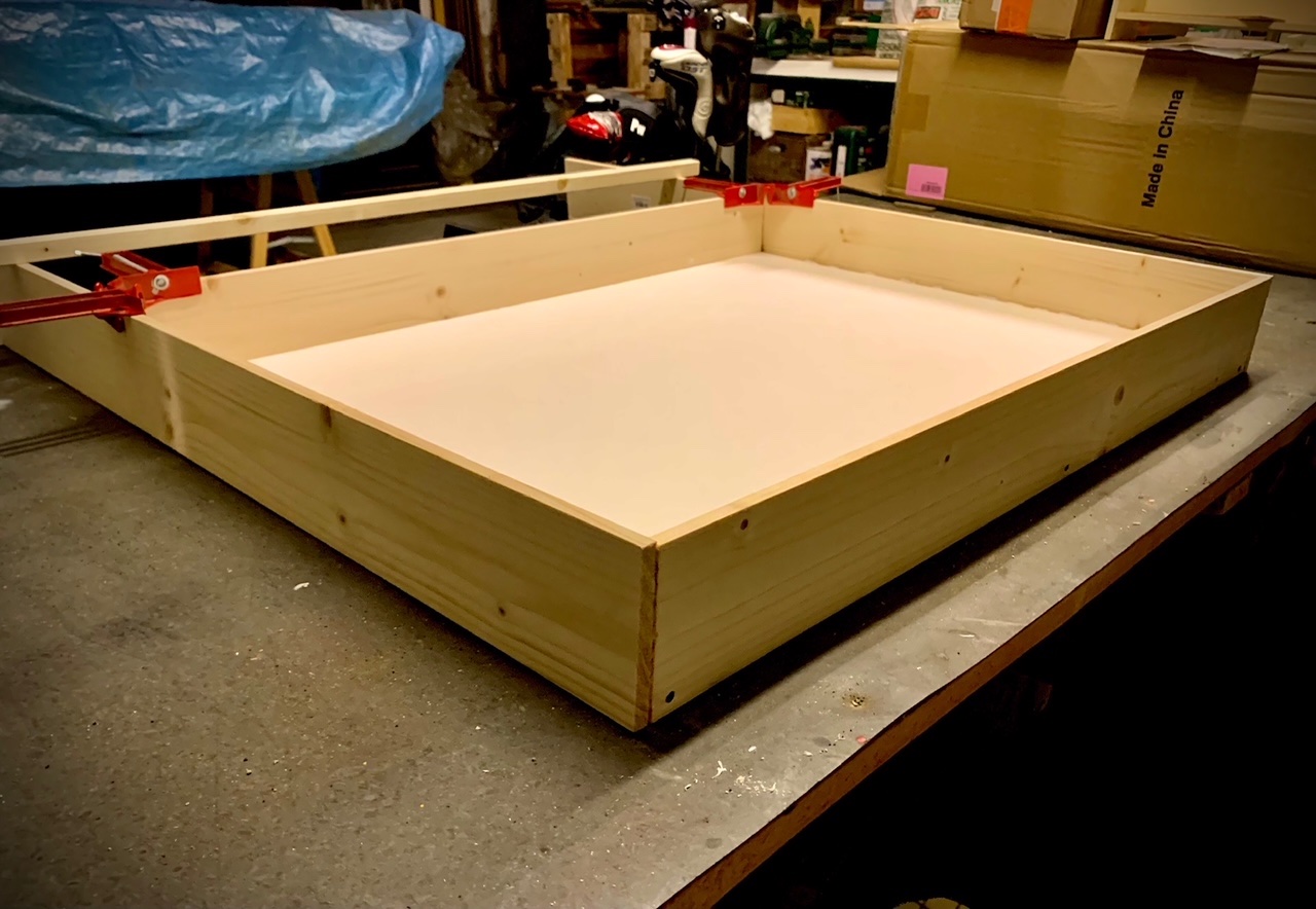 Manca ancora il coperchio. Per questo, pensavo ad una lastra di plexiglas al posto di un foglio in compensato. Vedrò poi di trovare la soluzione migliore