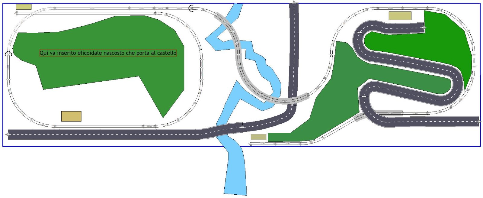 Una linea a se che va su e giù per il castello tramite un elicoidale (sarebbe meglio una cremagliera ma non trovo il materiale adatto…aiutooo!);