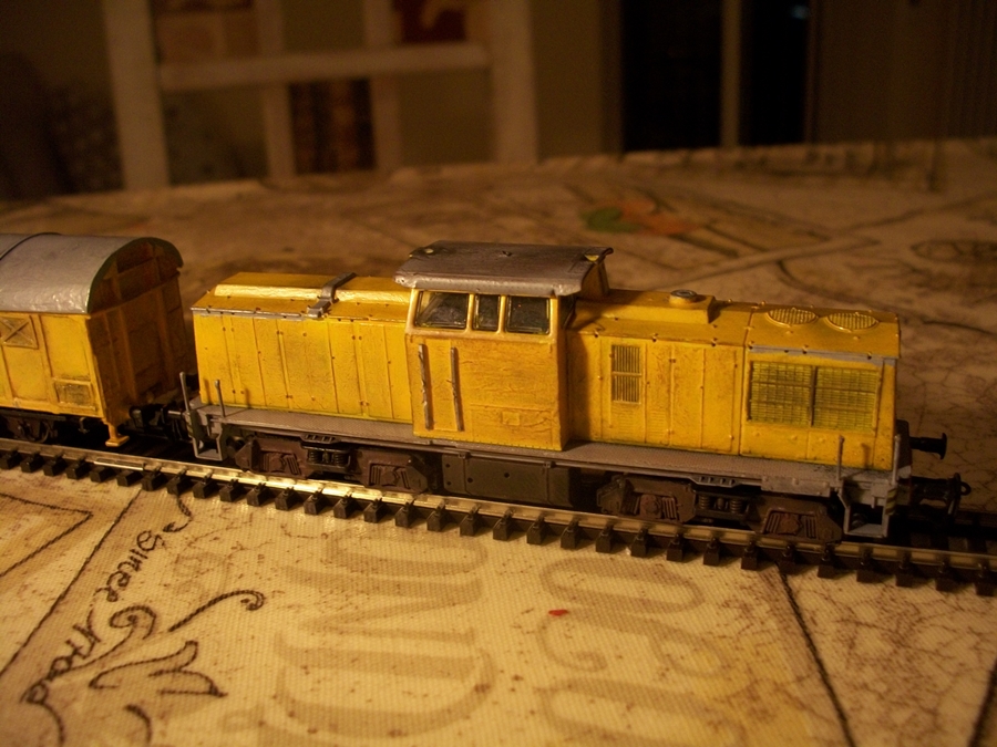 Allego due foto delle mie elaborazioni delle loco V100 e V200 per il treno cantiere/servizi in scala TT.