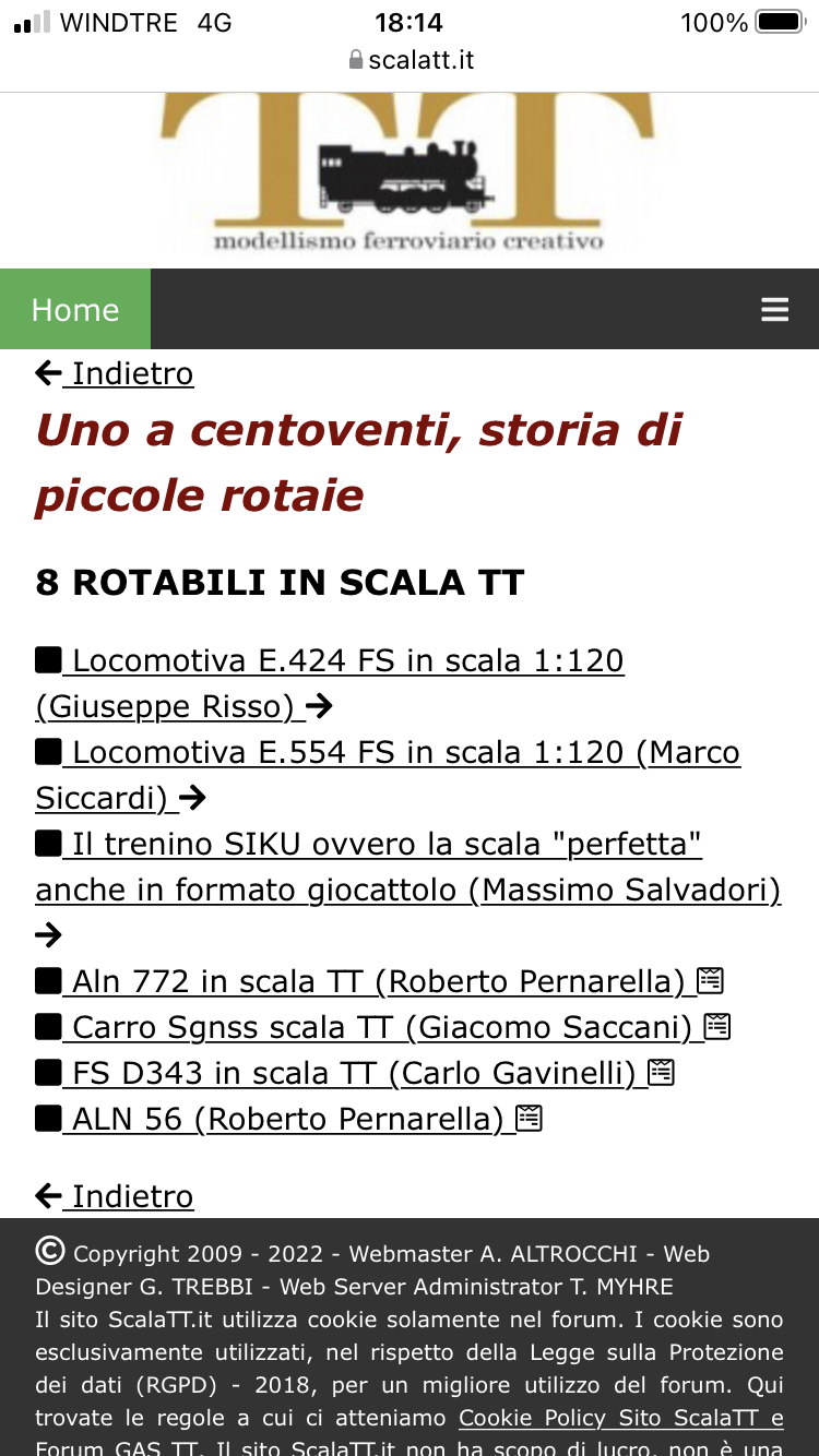 Per contro ricordo a tuTTi che sul nostro sito esiste una pagina dedicata ai rotabili italiani in scala 1:120, cosi come sul forum è presente la sezione dedicata all'autocostruzione ed elaborazione in scala TT: