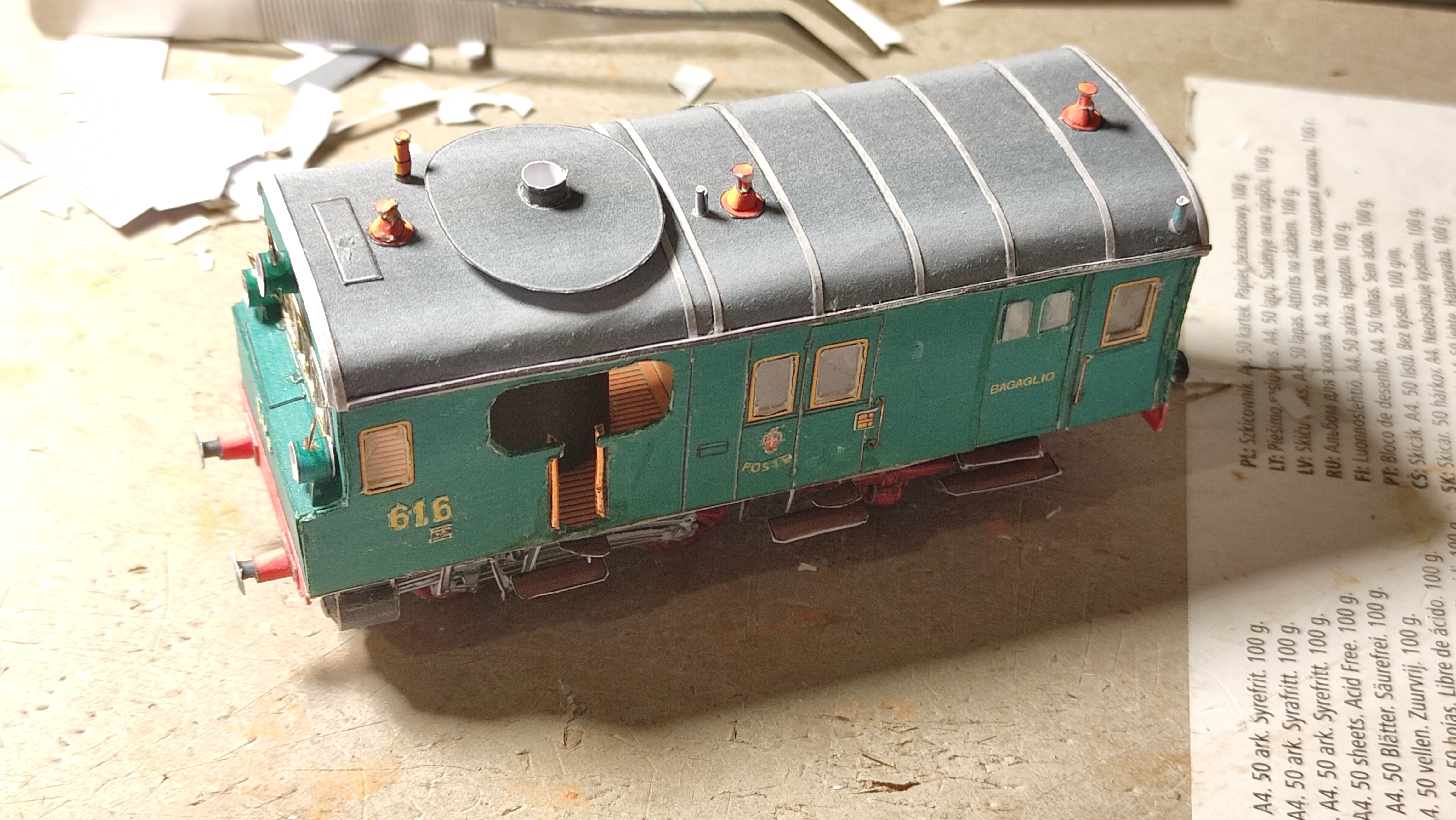 Nel frattempo ho continuato le rifiniture sulla loco: ho montato le strutture sul tetto (di cui ipotizzo la funzione ma non so quasi nulla... Ma è un altro discorso).