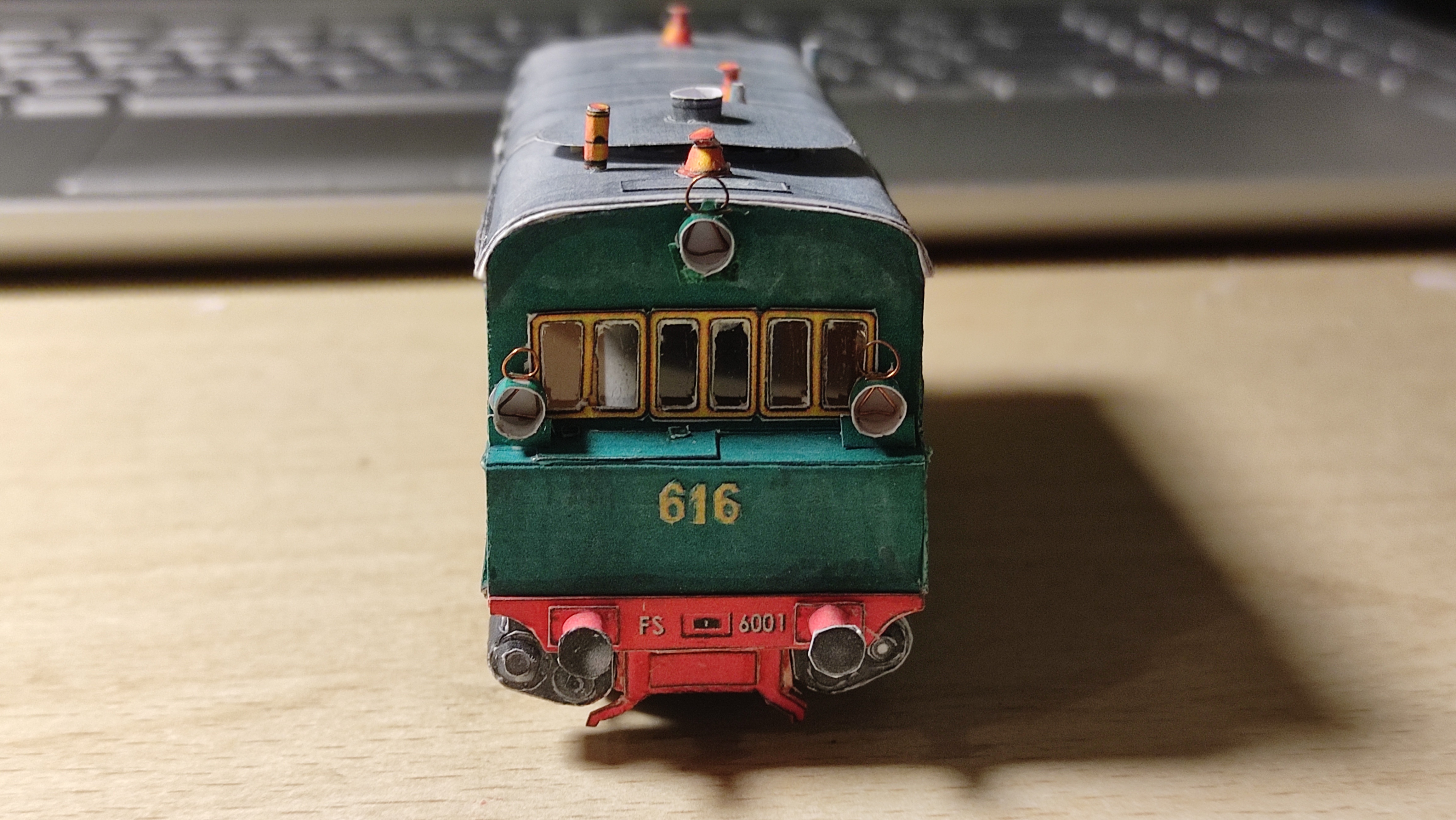 Ieri sera ho continuato il lavoro di dettaglio sulla Gr 60: aggiunti i fanali anteriori (migliorati con un po' di filo di rame sottile preso da un cavo elettrico), i respingenti anteriori e, sempre con il filo di rame, ho fatto un po' di maniglie laterali. Giusto due foto...