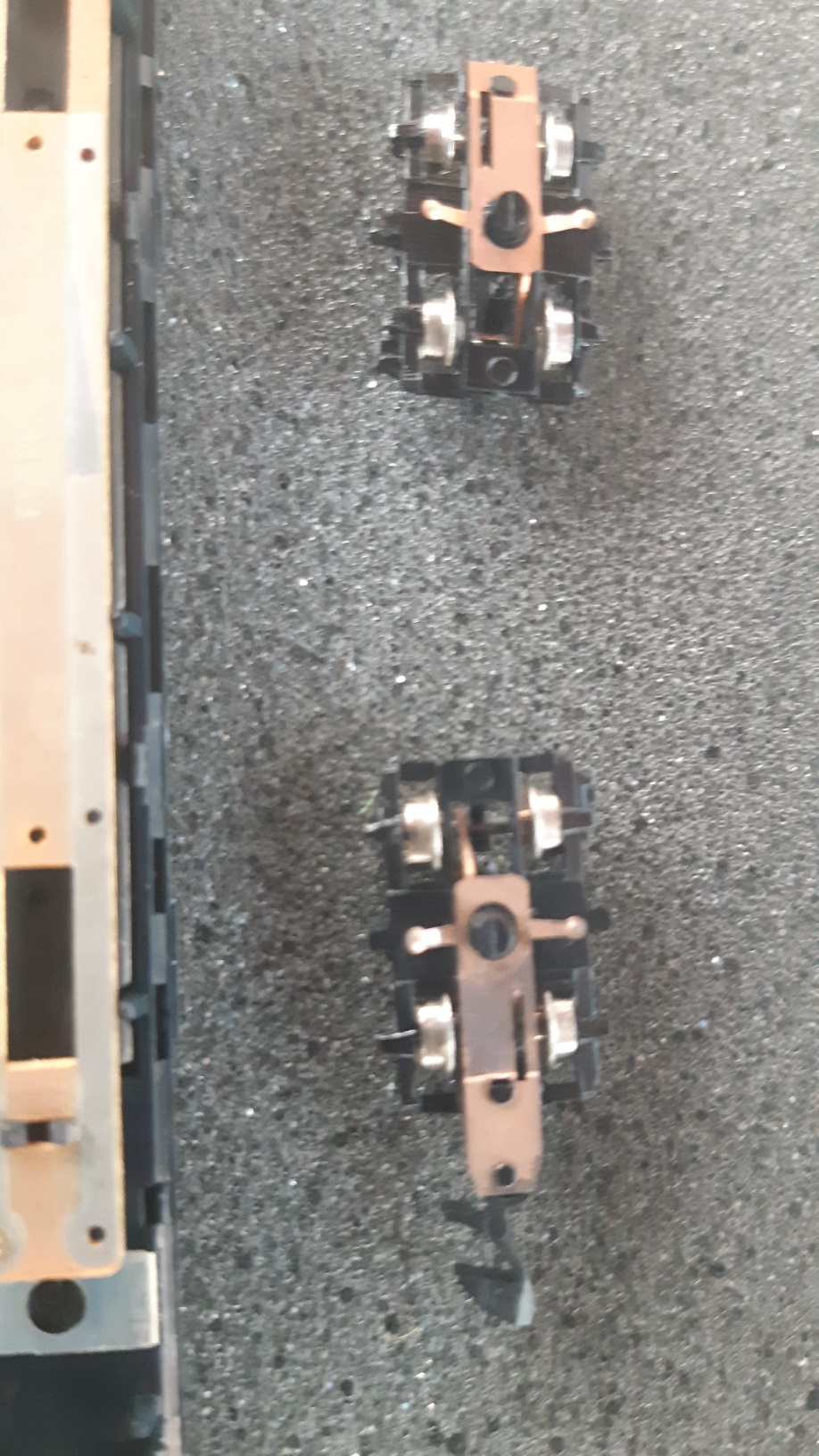 I carrelli hanno molto gioco assialmente, rispetto alle altre carrozze mi sembra anche diverso il sistema di fissaggio dei carrelli essendo predisposte per la presa della corrente.