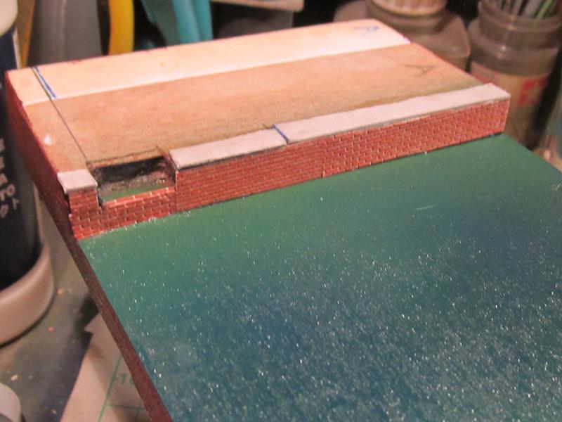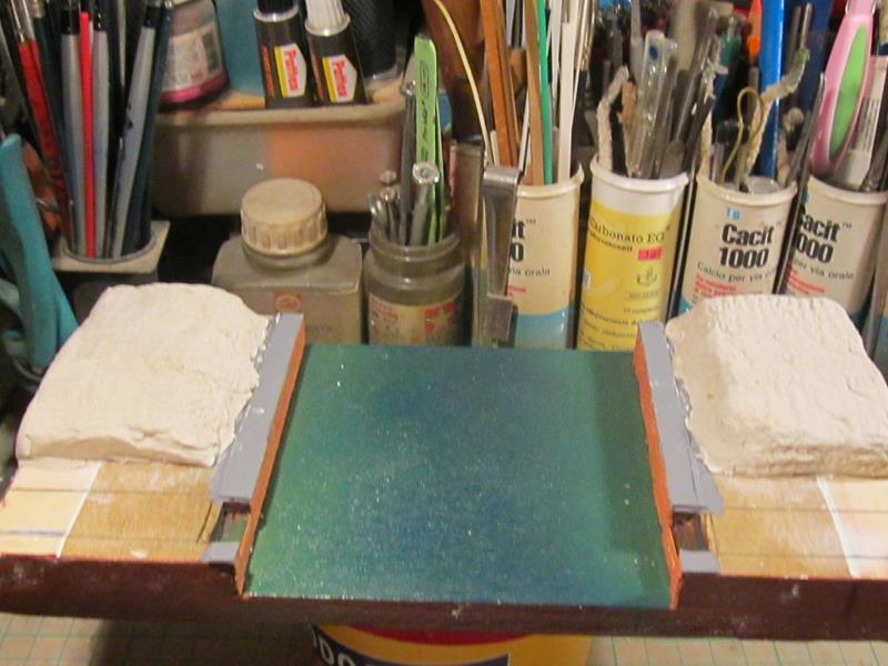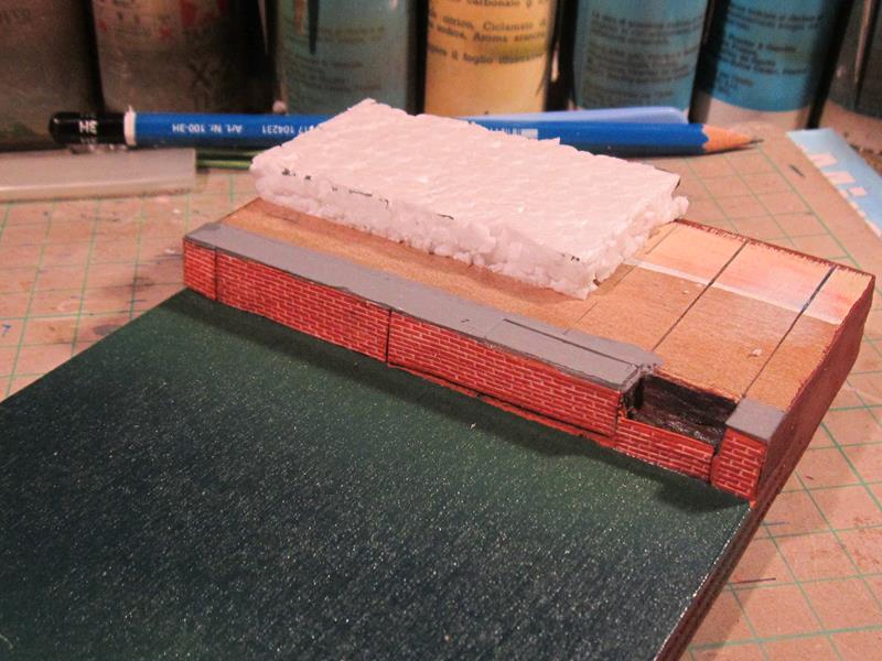 colorato il terreno, posizionato i muraglioni e colorati, proceduto a fare un leggero invecchiamento, piantumato alcuni alberi.