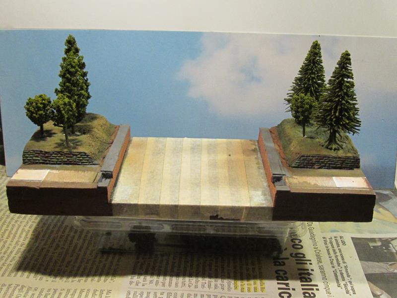 colorato il terreno, posizionato i muraglioni e colorati, proceduto a fare un leggero invecchiamento, piantumato alcuni alberi.