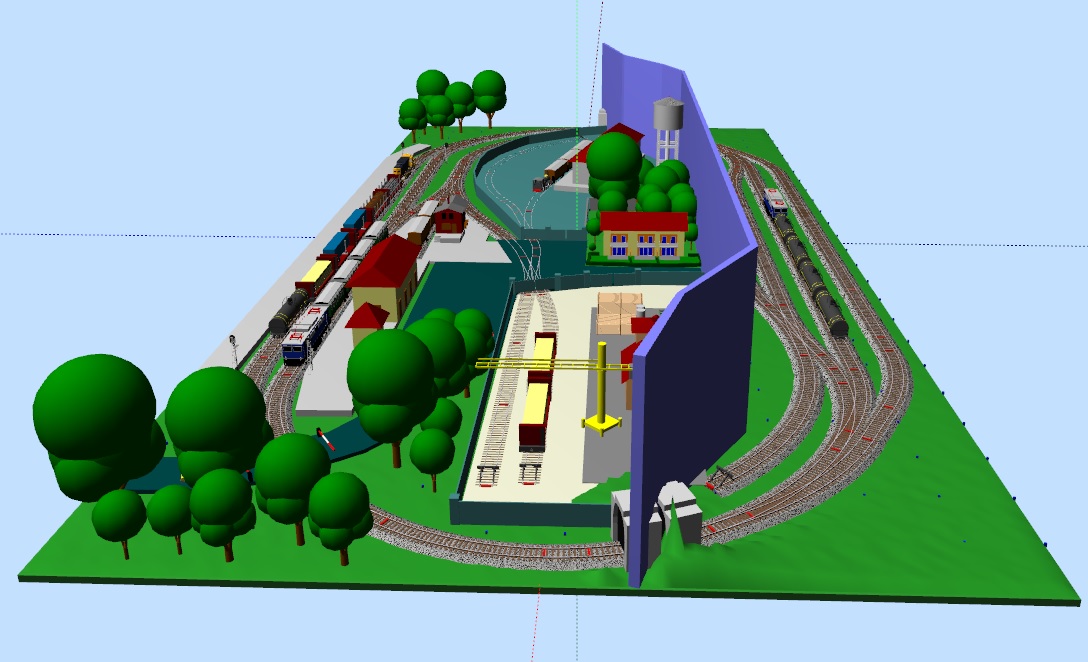 Riprendo e rielaboro da altro forum questo ovale che permette un discreto esercizio sfruttando una divisione tra la parte scenografata e la stazione nascosta.
