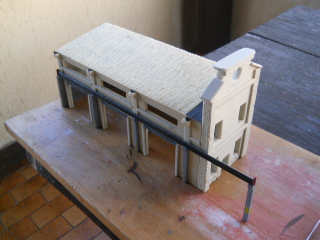 tetto terminato e mano di pasta acrilica, non guardate il colore tanto poi và pitturato di nero