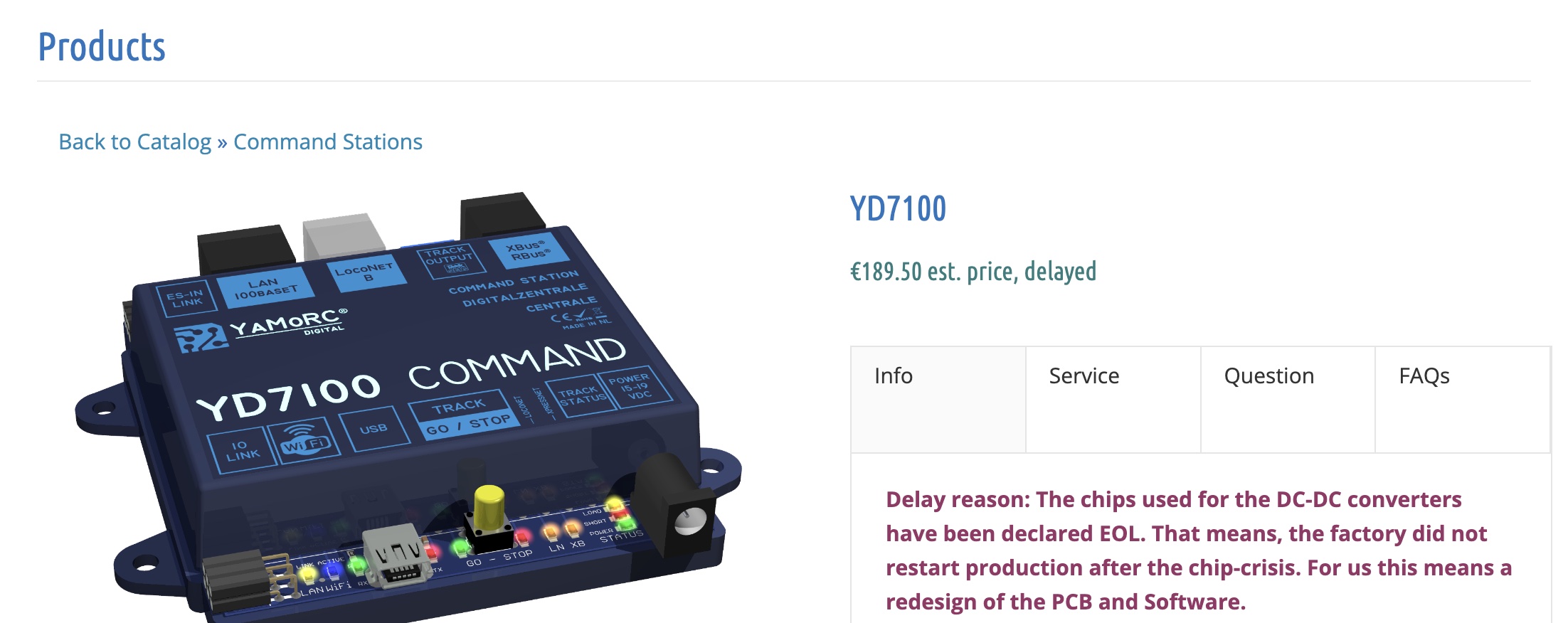 la produzione di YD7652, YD6016LN-RC, YD7910 e YD7912 è stata ritardata. Come per la centrale, in attesa del YD7652, YaMoRC commercializzerà alcune unità del DR5052, acquisite insieme alle DR5000.