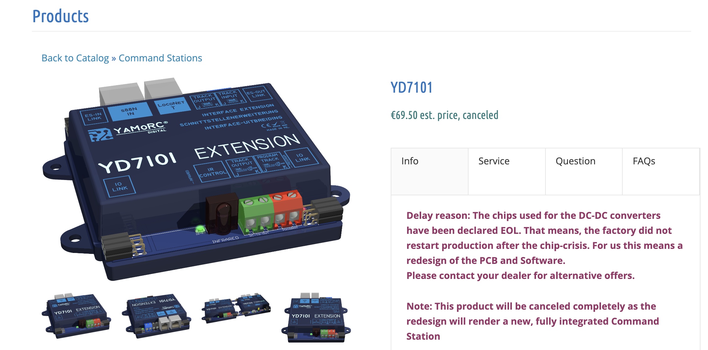 L'estensione YD7101 è cancellata dalla produzione, la piccola YD7100 sarà prodotta solo se ci sarà sufficiente richiesta, e non prima della fine del 2024.