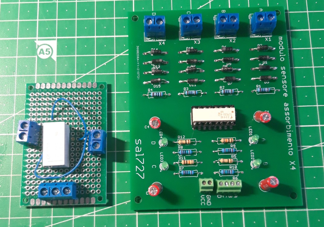 Questi sono il modulo a 4 sensori e il relè bistabile su basetta che ti mando nei prossimi giorni: