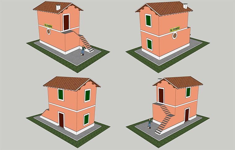 Bene, prima l’ho ricostruito in scala 1:1 con SketchUp, poi riportate le misure in scala N, l’ho realizzato in cartoncino di 1,5 mm. di spessore, i pluviali sono in filo di rame e le grondaie in foglio di alluminio, le persiane, sono le ormai note fascette.