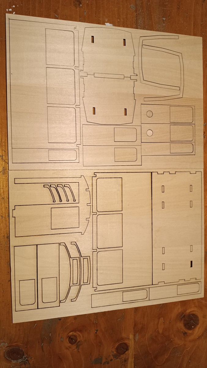 Intanto ho preparato e tagliato i pezzi nel compensato da 1mm e 2mm
