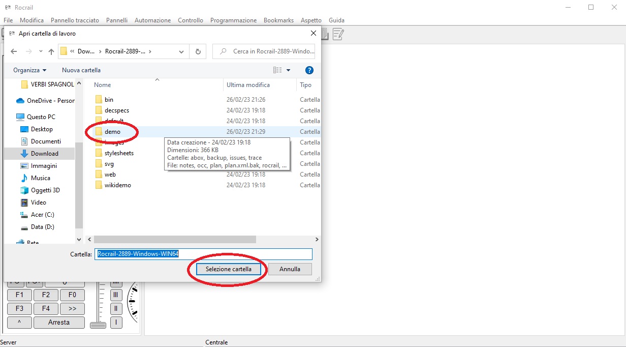Evidenziata la cartella DEMO confermarla con il tasto SELEZIONE CARTELLA