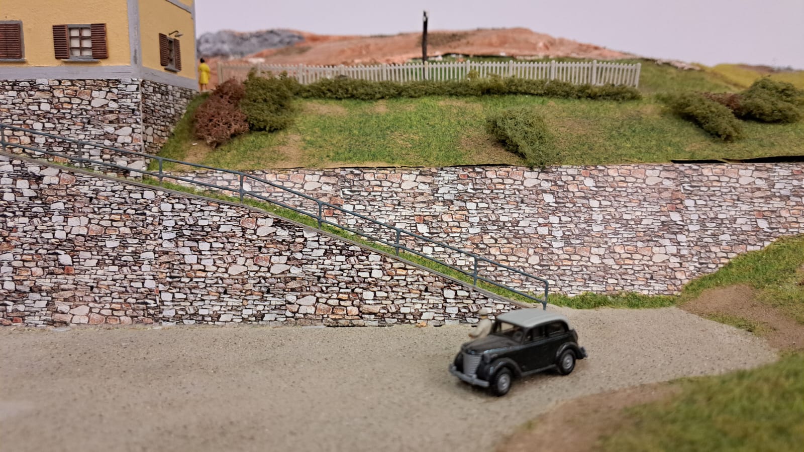 Ed in azione... Riparazione traversa limite di stazionamento nella parte alta del plastico di Carnate...