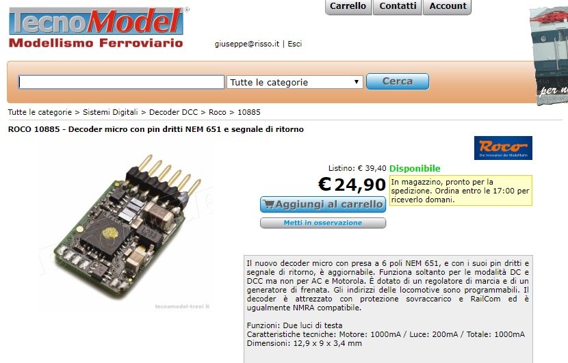 Ora però preferisco comperare da Tecnomodel, più o meno hanno gli stessi prezzi (ora spenderei 215,30 contro i 217,04 di Lippe: uguali e tutti e due trasporto gratis).