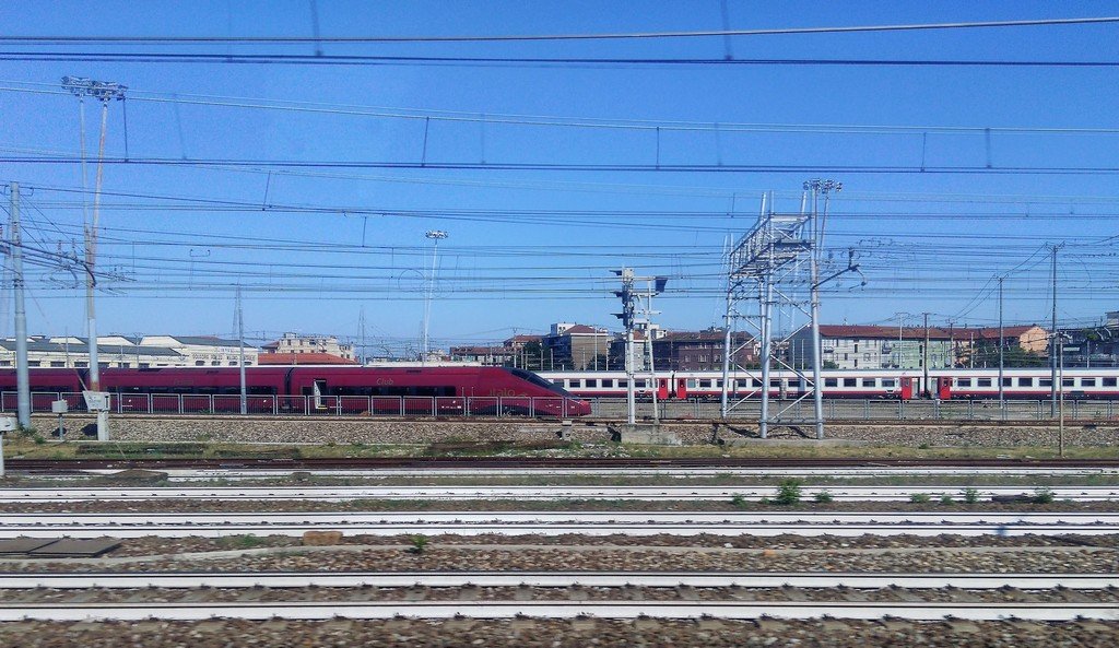 La sosta a Milano Centrale dura circa 10 minuti, durante i quali viene eseguito anche il cambio di banco. La stazione di Milano Centrale, infatti, è una stazione di testa, è quindi necessaria l'inversione del senso di marcia del treno per proseguire verso Torino. Ripartiamo alle ore 16:55, quindi ci dirigiamo verso Milano Certosa e Rho Fiera, dopo la quale ci immettiamo sulla linea ad alta velocità per Torino. La linea veloce, dopo la stazione di Rho Fiera, piega a sinistra verso l'autostrada A4, si accosta alla stessa e prosegue verso Novara, mentre la ferrovia storica corre più a nord e tocca le stazioni di Rho, Magenta e Trecate. Appena immessi sulla linea ad alta velocità il treno accelera e raggiunge velocità prossime ai 300 km/h, che manteniamo lungo tutta la tratta. Il percorso della ferrovia, similmente a tutte le altre linee ad alta velocità, si accosta ai percorsi autostradali, al fine di ridurre al minimo l'impatto ambientale.
