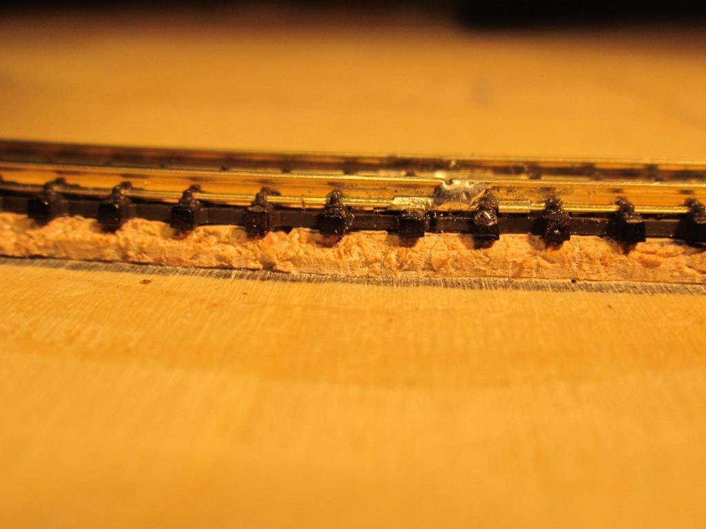 contro il mio solito per questo tracciato ho saldato le scarpette per ottenere il massimo contatto possibile e riempire qualsiasi fessura tra le connessioni rotaie, in modo da poter avere una buona conducibilità anche al minimo :wink: