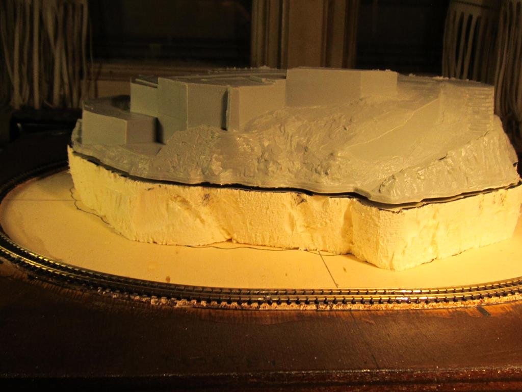 Ovviamente il polistirolo, specialmente sui lati dovrà essere rifinito scolpendo le rocce e la parte terminale della scala di accesso al castello.