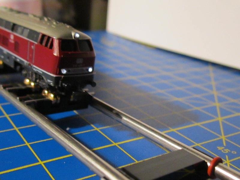 Una volta cablati i cavetti ( ho dato un colpo di saldatura a stagno per sicurezza ) possiamo collegare ad un trafo o centralina digitale per iniziare i nostri test. Una volta distanziati i dolly in modo che le ruote della loco possano adattarsi finalmente iniziamo i nostri test dinamici