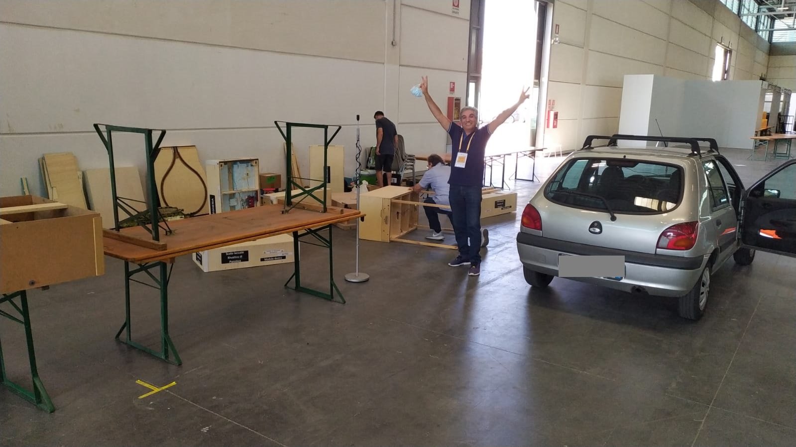 Ore 11.00, iniziati i lavori per allestire il nostro impianto modulare.