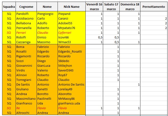 avrei bisogno di conferme delle presenze per il giorno 17/03 per un problema di Pass a disposizione, ne abbiamo 18.