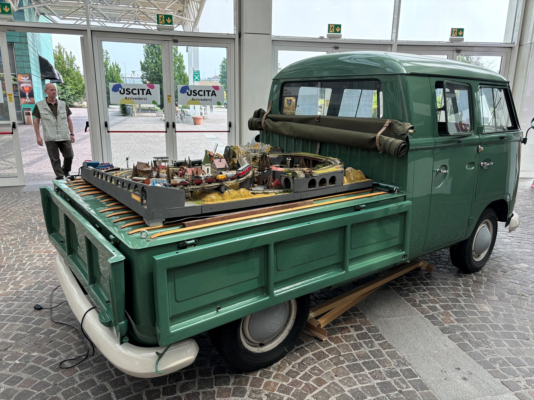 Una meraviglia il Volkswagen Transporter T1 (?) in versione semicabinato, noto che è elettrico...