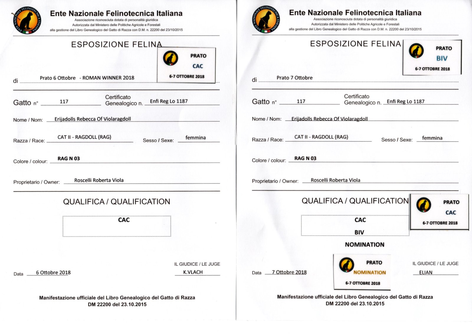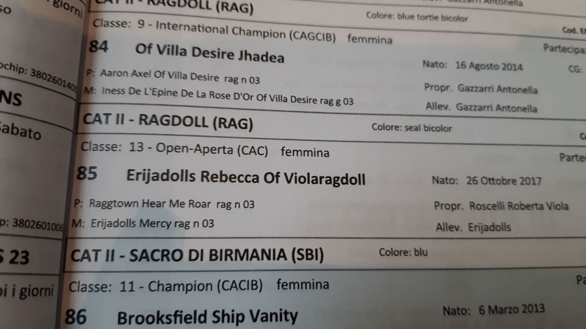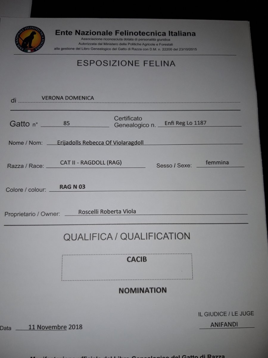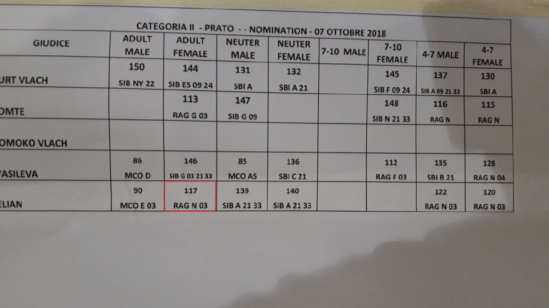 Il gatto 117 "RAG N 03" è nominato nel ring del "Best in show" (Migliore dello show per la sua categoria).