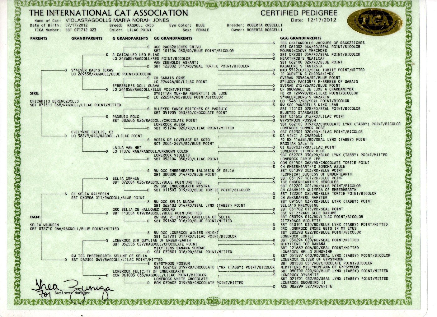 Femmine adulte 117 RAG (Ragdoll).....