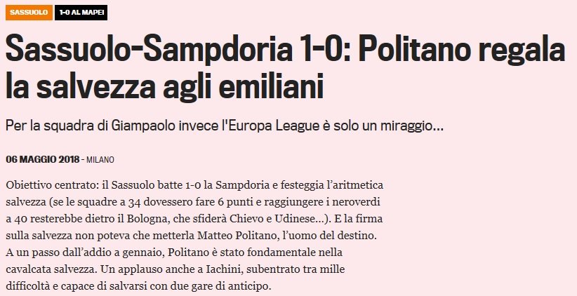 Seriamente... se mi dai anche il pronostico di Inter Sassuolo, provo a scommettere qualcosa.