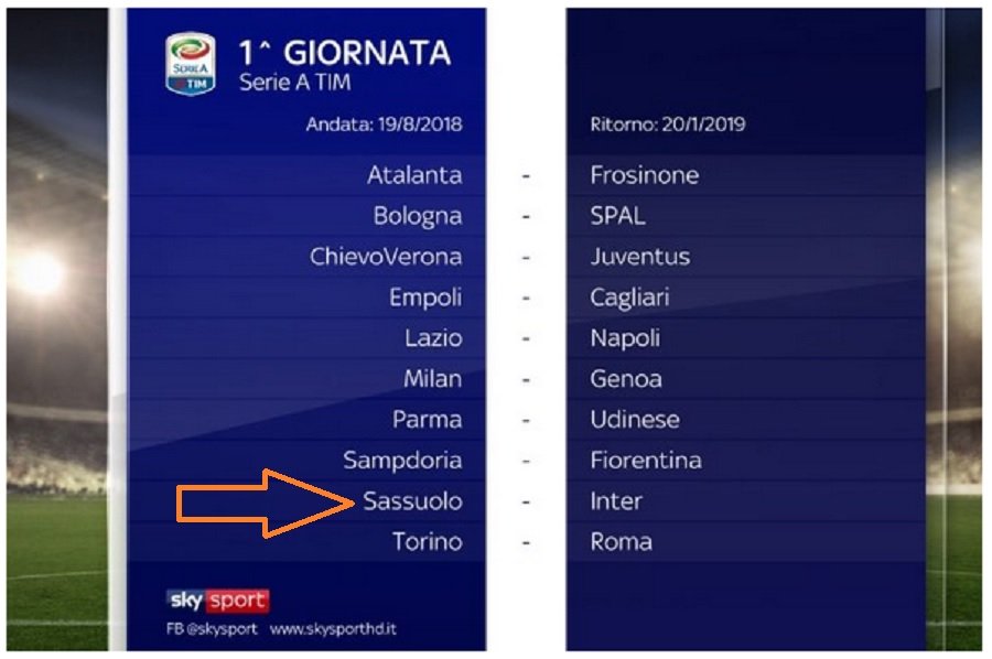 Il Sassuolo gioca con l'Inter, non con la Juventus.
