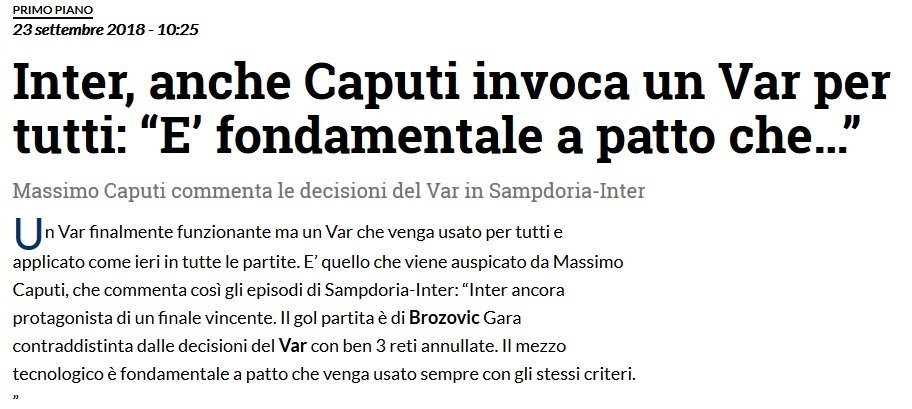 Comunque consentitemi un sincero ringraziamento alla classe arbitrale che, grazie alla VAR, ogni tre gol ce ne convalida uno.