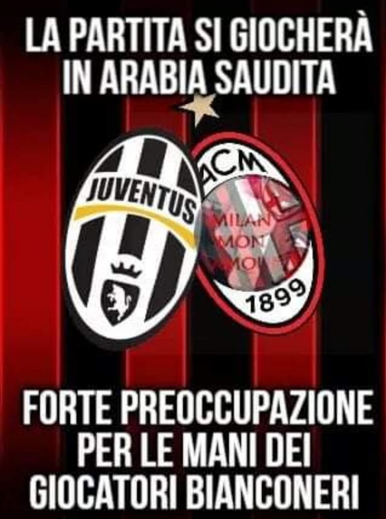 Confermo, c'è Juventus - Milan e per motivi di sicurezza credo si giochi a Gadda (Arabia Saudita).giuseppe_risso ha scritto: ↑martedì 1 gennaio 2019, 17:30 ...Mi è stato detto che deve essere una specie di regolamento di conti nell'ambito della malavita.