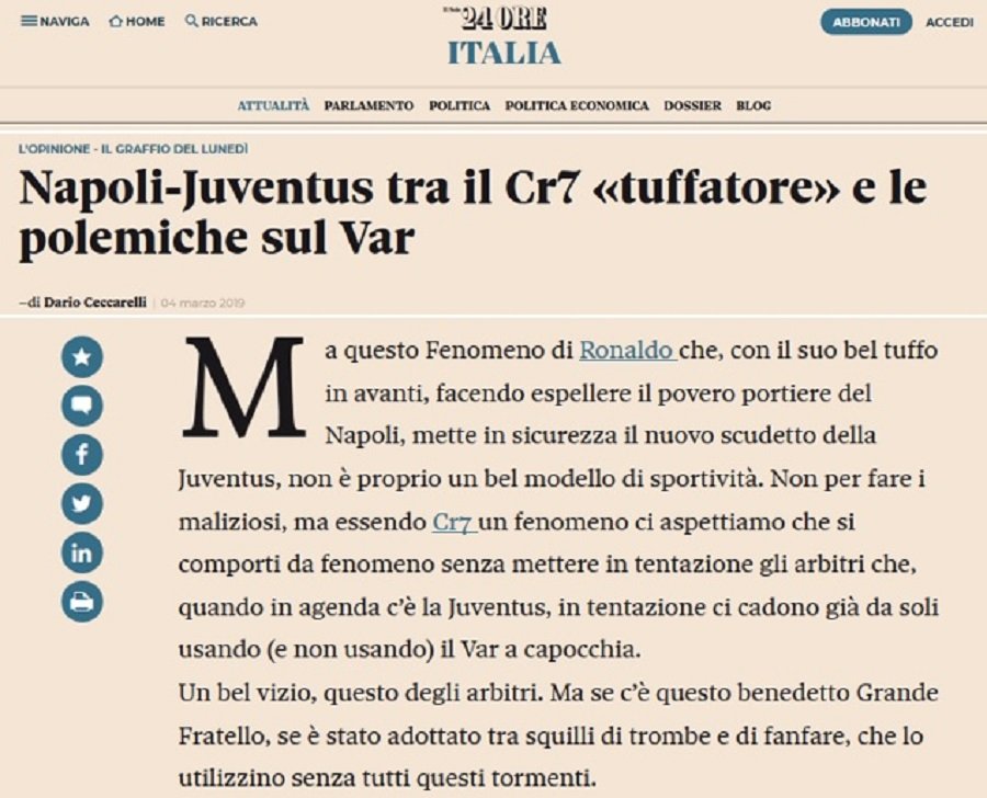 Sei il solo a farlo, insieme al giornalista interista del Sole24ore che ha scritto quell'articolo.