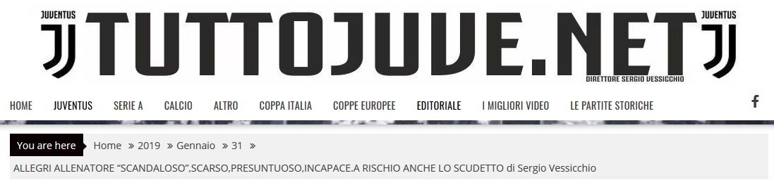 Andrea ha scritto: martedì 12 marzo 2019, 23:30 Caro mio, siete voi Juventini che avete massacrato Allegri, fino a due ore fa in TV e sui giornali si discuteva su chi sarebbe stato il prossimo allenatore della Juve...