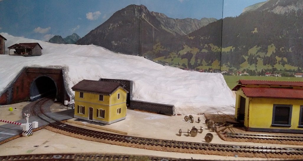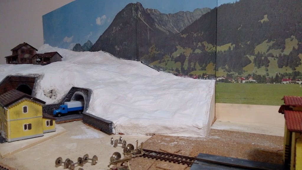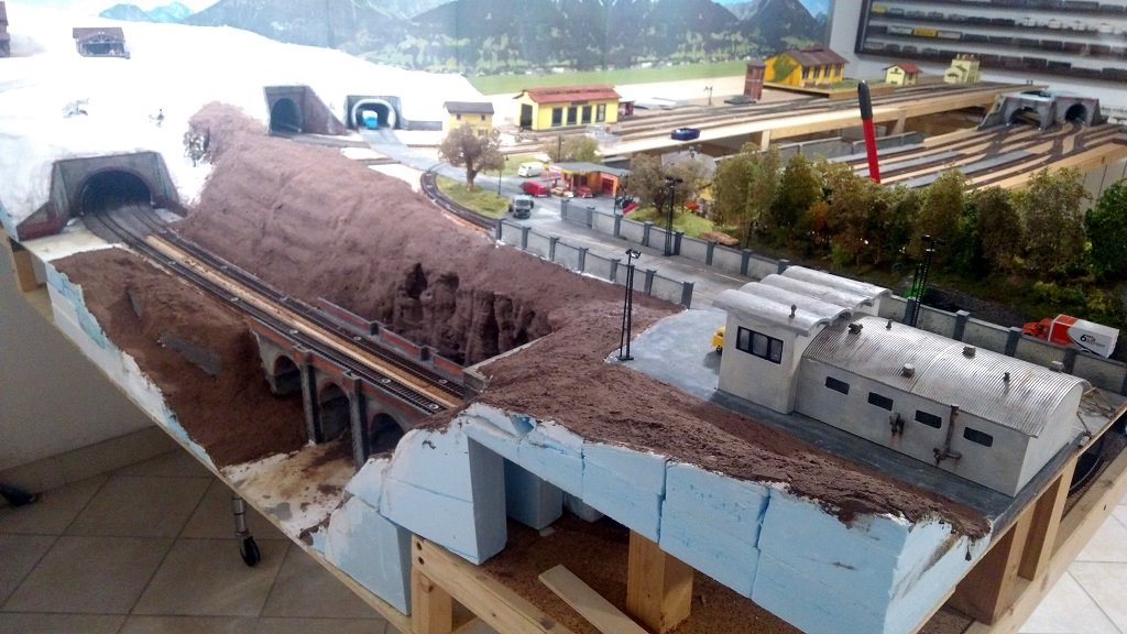 Riprendo la discussione perché ho iniziato a dare una primo impasto di fondo sopra la benda gessata precedentemente stesa che mi servirà poi per evidenziare la parti rocciose