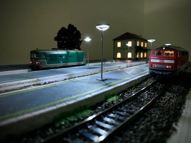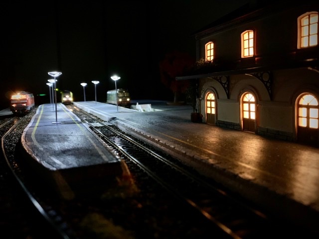 per esempio io ridurrei la luminosità della stazione e accenderei la pensilina,vedi questa che ho realizzato per un amico: