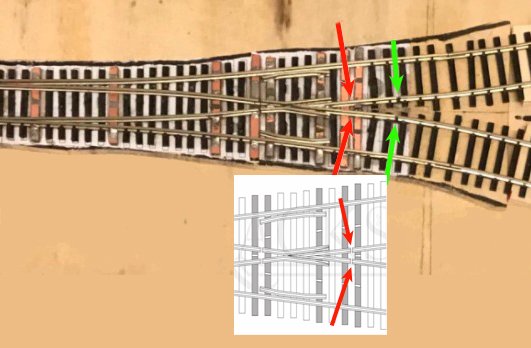 Riguardo poi alla tua ultima affermazione " In effetti però quel sezionamento non sarebbe necessario." ti posso dire che invece è necessario, altrimenti avresti un corto circuito dato che la rotaia destra e quella sinistra sono saldate insieme nella V del cuore.