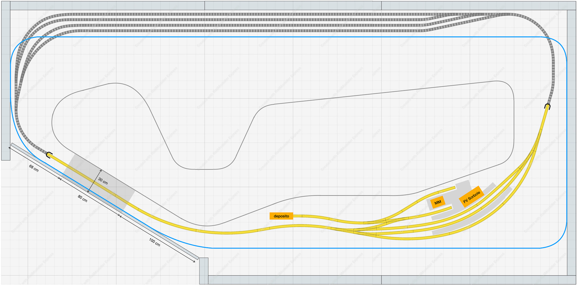 Nel caso si scegliesse la soluzione con il doppio deviatoio inglese va ovviamente modificata la posizione e forse la dimensione del MM.