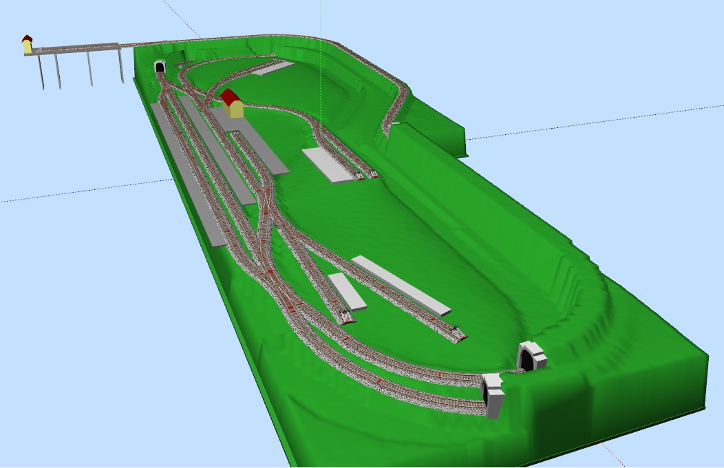 Qui un possibile piano binari sfruttando lo schema di plastico a due piani con stazione nascosta al piano inferiore.