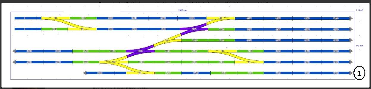 Tu intendi così? Se fosse sono d'accordo.Senialas ha scritto: ↑venerdì 12 gennaio 2024, 16:53 Mauro, ii però il tronchino non le aggiungerei come l’hai messo tu, ma inserendo un deviatoio (con curva e segmento dritto terminale) prima del deviatoio sul binario 2, in modo da renderlo direttamente disponibile senza manovre per uscire dal binario 1.
