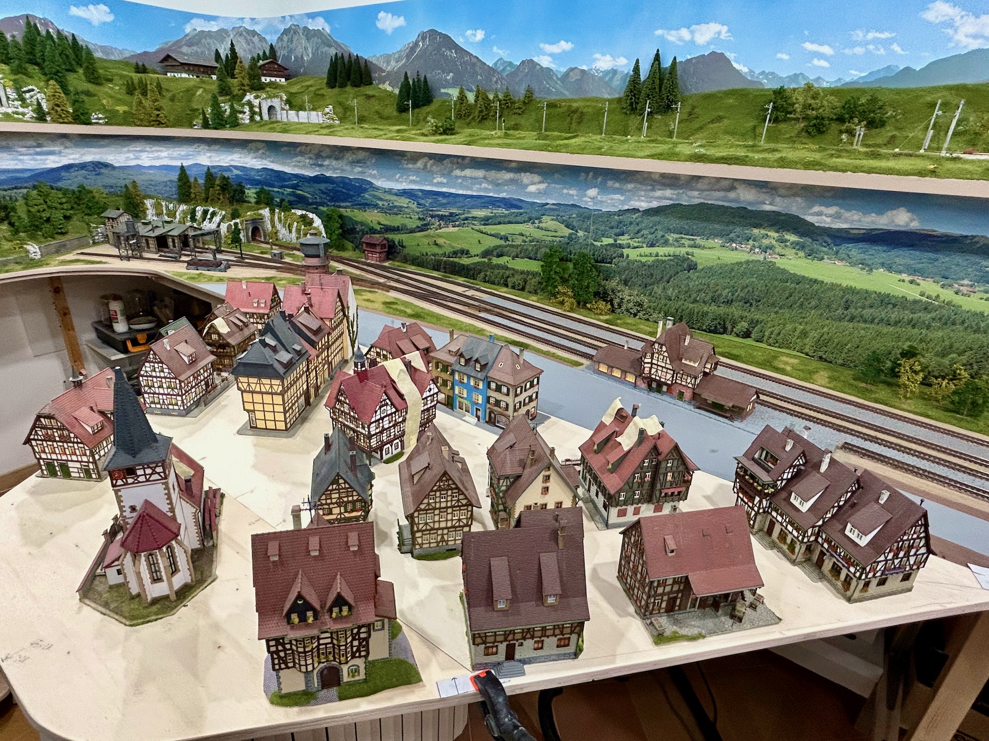 Sono invece escluse le ore per verniciare, assemblare e invecchiare tutti gli edifici tedeschi e gran parte di quelli svizzeri dato che provengono dai miei plastici precedenti.