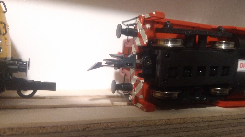 Per ora mi sono dedicato all'aspetto funzionale della macchina, oltre l'appesantimento sopra descritto(ero indeciso se appesantirla o provare il prodotto da dare sugli assali presentato qui sul forum tempo fa da Carlo Arcidiacono con ottimi risultati infatti i pesi sono inseriti non definitivi) ho cercato di migliorare la distanza tra la loco e il primo carro; la loco presenta la possibilità del gancio NEM, ma si vede che è un'adattazione per il mercato europeo, avendo in dotazione i ganci americani che non avrei mai utilizzato ho deciso di sacrificarli(anche per non rovinare quelli NEM) e con un operazione di taglia incolla mi sono creato due ganci con l'innesto a coda di rondine roco alla distanza giusta :wink:
