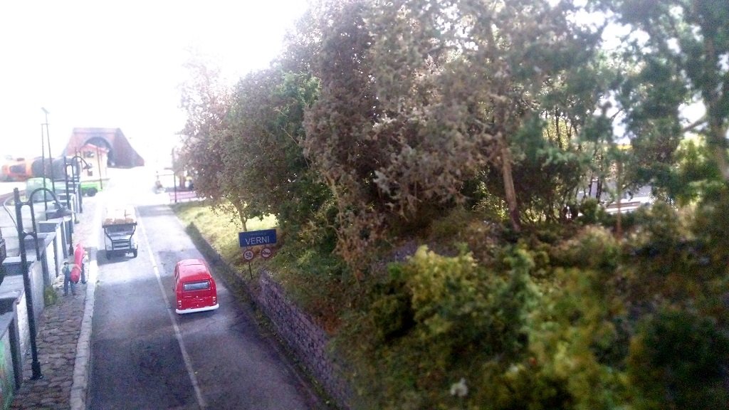 Diego i tuoi sono sempre ottimi consigli, infatti sto cercando proprio di seguire quelle regole da te descritte per le piante(in questo caso mi aiuto con le piantine di teloxis e qualcosa di aiuto costruito) inoltre sto cercando di mettere in partica i consigli che mi avevi dato precedentemente per il sottobosco, sotto le piante più grandi ho dato con il pennello a secco passate di ocra e marrone per dare l'idea dell'erba secca o comunque non verdissima, poi come sempre dacron per dare volume, qualche piccolo cespuglio qua e la e un po di incolto che tende a scendere sui muretti, piano piano piantumo e migliore le zone, ieri sono andato un po' avanti